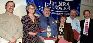 One of the raffles is called the "Grand Slam". You can win a prize on a local level but all of the tickets are saved and entered in a state wide raffle for the "Grand Slam" winner. All of the tickets from over 20 New York Dinners are in the "bucket" and one ticket is chosen. That lucky person wins one each of everything in the Standard Merchandise package that is offered by the NRA. That includes one each of all of the guns. In December 2008, one of the entries from the Orange County Friends of the NRA Dinner won the "Grand Slam" prize. This is a picture of him with all of the prizes: